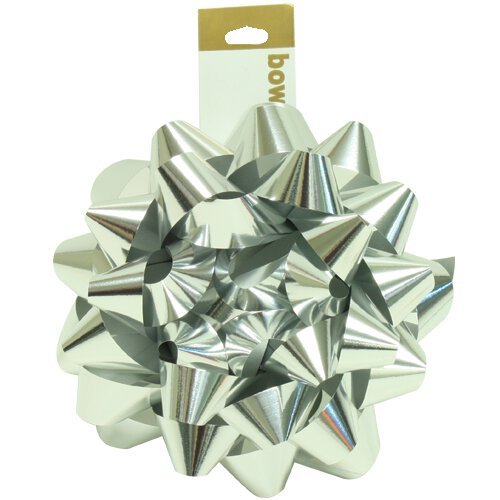- Bow has smooth metallic silver plastic finish and self-adhesive sticker on bottom, easily sticks to gift wrap, gift bags, or gift boxes