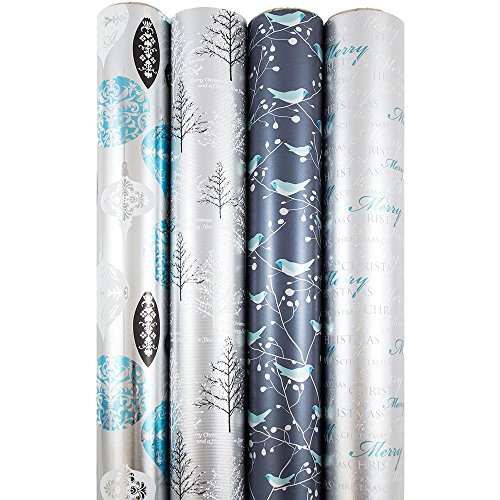 JAM Paper® Christmas Design Wrapping Paper is designed specifically for the Christmas and holiday season. This particular variety pack includes some of our best selling and newest Christmas wrapping paper. This Assortment comes with 4 Rolls of Christmas Wrapping paper. Eatch roll measures 45 square feet, making a total of 180 Square Feet between the rolls. Each roll is delivered in protective cellophane wrap, ensuring the highest quality wrapping paper. This wrapping paper will make any wrapped gift more festive, and will really stand out under the tree this winter. Get all of your holiday wrapping paper shopping done with one order for a great value withJAM Paper® holiday gift wrap bundle!