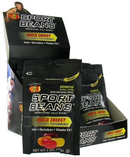 Jelly Belly - Sport Beans Energizing Jelly Beans Assorted - 1 oz. The original four Jelly Belly Sport Beans flavors are now all in one package: Lemon Lime, Orange, Fruit Punch and Berry. Jelly Belly Sports Beans Energizing Jelly Beans Assorted gives you the vitamins and electrolytes required to get through grueling exercise or endurance competitions. Jelly Belly Sports Beans Energizing Jelly Beans Assorted has a variety of delicious tastes, made with natural flavors and real fruit juices that will keep your workouts fun and flavorful. Jelly Belly Sports Beans Energizing Jelly Beans Assorted are packed with nutrients that you need to blast through any athletic endeavor. Used by the Jelly Belly Pro Cycling Team and other athletes, Jelly Belly Sports Beans Energizing Jelly Beans Assorted is a clinically proven, great tasting way to maximize sports performance. Each bag of Jelly Belly Sports Beans Energizing Jelly Beans contains: Carbohydrates Electrolytes Vitamins B & C FAQ General Questions What are Sport Beans jelly beans?Sport Beans jelly beans are a first-of-its-kind new jelly bean product from the makers of Jelly Belly! They have been specially formulated to fuel and replenish your body during exercise.What are the benefits of eating Sport Beans?A single pack of Sport Beans (1 oz.) contains 24 grams of carbohydrates to fuel your body during intense exercise, and a balanced supply of electrolytes (sodium and potassium) vital for maintaining fluid balance. In addition, Sport Beans contain Thiamin (vitamin B1), Riboflavin (Vitamin B2), and Niacin (Vitamin B3) to help burn carbohydrates and fat, as well as Vitamin C to protect muscles and cells against oxidative damage.What makes Sport Beans different from regular jelly beans?Sport Beans are specially formulated with sports performance in mind.