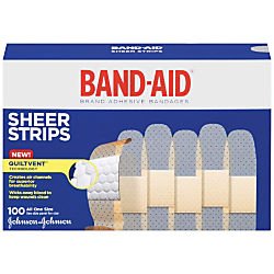 Band-Aid Brand Adhesive Bandages Sheer Strips are designed to be more flexible than ordinary plastic bandages. This design helps them to stay in place while they cover and protect minor wounds. These bandages feature a Quiltvent pad with air channels and Microvent backing for superior breathability. The pad wicks away blood to keep the wound clean and is nonstick for comfortable removal.
