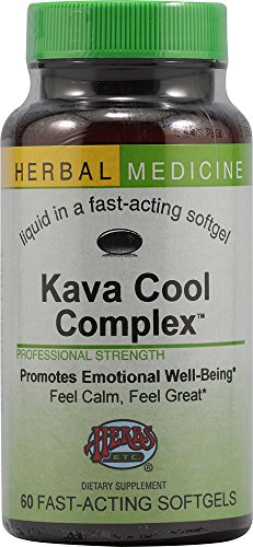 Kava Cool Complex by Herbs Etc 60 Softgel Kava Cool Complex 60 Softgel Kava Cool Complex Possesses mood elevator properties. Useful for mild anxiety edginess tension mental and physical agitation. Relieves nervousness and muscle tension due to stress. Permits sleep when insomnia is due to muscle and or mental tension. Supports a positive mental outlook. Ingredients Kava root Chamomile flower fresh and dry St. John's Wort herb in bud fresh Oat seed in the milky stage fresh Passionflower herb tip Hops strobile fresh Skullcap herb and Stevia herb. Suggested Use As a dietary supplement Take one softgel or 30 drops with water as needed. Or as directed by your healthcare professional. Supplement Facts Serving Size 1 Softgel Servings Per Container 60 Amount Per Serving Daily Value Calories 5 Proprietary Blend 200 mg Alcohol Free Concentrated Extracts of Kava root Chamomile flower fresh and dry St. John's Wort herb in bud fresh Oat seed in the milky stage fresh Passionflower herb tip Hops str
