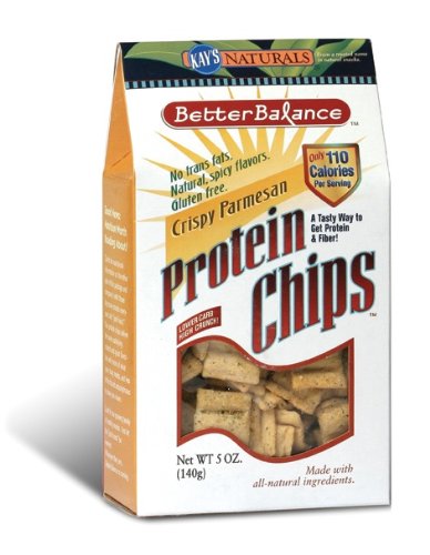 - Crunchy protein chips with parmesan and spice flavorings.