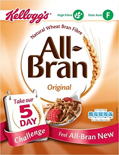 Eat Kellogg's All-Bran cereal sprinkled on top of your favourite bowl of cereal to give you a little fibre boost or eat a whole bowl full for your breakfast on it's own or mixed with fruit. Kellogg's believe that eating healthy and staying active is the best way to maintain your weight and general health. Their research shows that eating a diet filled with carbohydrates, fruit and vegetables is a good way to start doing this, not to mention getting regular exercise. Working out a balanced diet is not easy and it differs for each individual depending on their daily routine and needs but a sure way to start the day is with a handful of Kellogg's All Bran breakfast cereal. Each bowl contains a healthy combination of essential dietary components and contains 85% wheat bran so you get a really high fibre start to the day. It also contains iron, vitamin B6, Riboflavin (B2), Thiamin (B1), Folic Acid, Vitamin D, Vitamin B12. You can try slicing a banana into it or adding some apple and raisins which adds flavour and extra goodness to your morning. Bananas are also a good source of energy so you'll get an added boost to start you day.