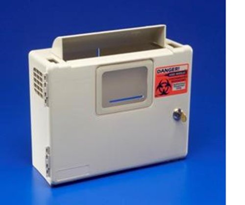 Mounted wall enclosures secure sharps containers, keep counter space clear, and help prevent access to contents in high traffic areas. Contents can be viewed by hospital personnel, but unsightly items are not fully visable to patients and visitors. These sturdy enclosures are made of ABS plastic - the same material used in football helmets. Optional glove box holders keep gloves readily available.