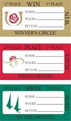 These officially licensed Kentucky Derby/Churchill Downs Tote Tickets allow the party quests to become more involved with the competitive excitement on race day. Each ticket is printed with a different logo and measures 3.5" x 1.75". There are 30 Win tickets, 15 Place and 15 Show for a total of 60 tickets per package.