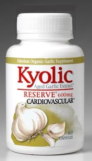 KYOLIC Reserve 600mg by Kyolic 60 Capsule Contains approximately twice the Aged Garlic Extract 600 mg of other formulas in one capsule. Studies suggest Aged Garlic Extract may support healthy cholesterol levels 1-17 circulation 18-21 immune function 21-32 liver function 41-48 and nerves49-54 and assists in fighting stress and fatigue.33-40 Dairy free formula. Kyolic Reserve SUGGESTED USE Take one or more capsule(s) as needed with a meal twice daily. Supplement Facts Serving Size 1 capsule Product Codes 200-41 60 capsules 200-42 120 capsules Amount per serving Daily Value Aged Garlic Extract Powder (bulb) 600mg Special Garlic Preparation Daily Value not established OTHER INGREDIENTS Gelatin Cellulose Magnesium Stearate (vegetable source) and Silica. Free of preservatives sugar sodium milk yeast gluten artificial colors and flavors. REFERENCES FOR KYOLIC RESERVE Abuirmeileh N. et al. FASEB J. 5(6) 8048 1991. Efendy J. et al. J. Vasc. Res. 33(S1) 23 1996. Efendy J. et al. Atherosclerosis
