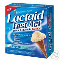 Description UPC: 300450930323 MANUFACTURER: J&J HEALTHCARE. INDICATIONS: Lactaid Fast Act Chewable Tablets use Lactase Enzyme Supplement. * Single Serve Pouches: 1 Chewable Tablet per serving. * Enjoy dairy again. * For the Prevention of: * Diarrhea. * Bloating associated with digesting dairy. * Lactaid Fast Act helps prevent the gas, bloating or diarrhea that many people may experience after eating foods containing dairy. INGREDIENTS: Mannitol , Microcrystalline Cellulose , Croscarmellose Sodium , Crospovidone , Magnesium Stearate , Natural Flavor , Artificial Flavor , Citric Acid , Sucralose. DIRECTIONS: * Chew 1 tablet with your first bite of dairy foods. * If necessary, you may take 2 chewable tablets at one time. * If you continue to eat foods containing dairy after 30-45 minutes, we recommend taking another chewable tablet. * May be used every time you eat foods containing dairy. Can be used with every meal and snack, every day. WARNINGS: * Consult your doctor if your symptoms continue after using this product or if your symptoms are unusual and seem unrelated to eating dairy. * Keep out of reach of children.Do not use if carton or single-serve packet is open. * This product is not intended to diagnose, treat, cure or prevent any disease. Before using read all label directions.