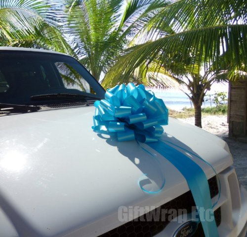 Best priced car bow on the market. The 16" car bow is perfect for decorating cars, extra large gifts, in-store merchandise, grand openings, parties, theme events and more. Each bow comes with two 36" ribbon tails for additional gift effect. Bows are shipped fully made and ready to use.