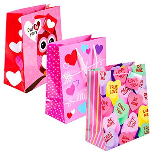 Wrap your Valentine's gifts with love in colorful printed gift bags! Large gift bags are perfect for gifting stuffed animals, flower arrangements, Valentine's candy, and more fun treats to impress your sweetie, family, friends, coworkers, teachers, neighbors, and more. Each bag measures 10x12x5" and has ribbon handles and an attached blank gift tag.