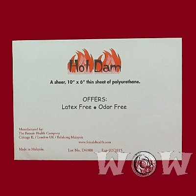Latex Free Dental Dams Hot Dam 12 pack by The Female Health Company - Standard 12 Pack: Wow Condoms Standard 12 Pack offers substantial savings when buying condoms online! Hot Dams are latex free made of 10 inch by 6 inch sheer polyurethane sheets. The Hot Dam dental dam is used as a barrier when engaging in oral sex to help reduce the transmission of bodily fluids, harmful germs, and sexually transmitted diseases. When used properly, latex dams may help reduce the risk of catching or spreading many sexually transmitted diseases however, they can not eliminate the risk. These are ideal for couples with a latex allergy. Our Condom Store offers the best dental dams in hand-packed bags of 12, 24, 36, 60, 100, and 144. Buy Hot Dam Latex Free Dental Dams at Wow Condoms - the best place to find your dental dams!
