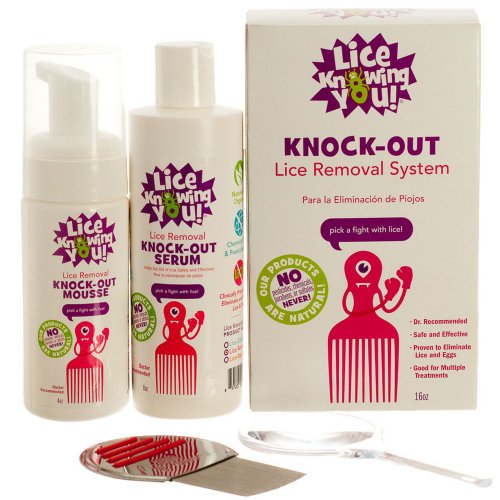 Doctor Recommended. Knock-Out Lice Removal System is a proven safe and effective way to eliminate lice and nits just like the professionals. The Knock-Out Lice Removal System contains Lice Removal Knock-Out Serum, Lice Removal Knock-Out Mousse, a Knock-Out Lice Comb, a Magnifying Glass, a video tutorial and step-by-step instructions, in both english and spanish, on how to remove head lice. The contents of the kit can be used for multiple treatments. Give a one, two punch to lice - and knock it out for good.- Clini- cal studies have shown that Lice Knowing You lice removal products make the task of head lice removal easy and trouble-free.