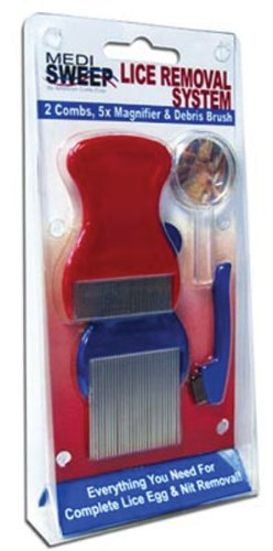 The MediSweep Lice Removal system has all the essentials for effectively removing lice eggs and nits. The Egg Removal Comb features short rounded teeth which allow for easy access to the base of the hair shaft, combing out lice eggs efficiently with each stroke. The Nit Removal Comb has long, tapered teeth which help guide multiple hair strands through each stroke to maximize the number of nits removed during the treatment. A 5X Magnifier helps locate lice, eggs, and nits easily for a more thorough inspection of the scalp and hair. Also included in the MediSweep Lice Removal System is a Debris Brush which is perfect for brushing away dead lice, lice eggs and/or nits that may get stuck between comb's teeth. It can also be used to clean individual combs during and after use.