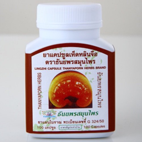 Lingzhi Ganoderma Lucidum 200 Capsules, Thanyaporn Herbs. 2 Bottles with 100 Capsules Each, Reishi.