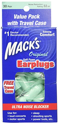 Mack's Original Soft Foam Earplugs are molded with state-of-the-art super low-pressure, skinned and tapered foam. These special features provide unmatched comfort and improved hygiene. With a noise reduction rating (NRR) of 32 decibels, Mack's Original Soft Foam Earplugs can be used in environments where noise is just a nuisance up to environments with hazardous noise levels. For sleep, study, work, shooting, travel, power tools, loud events, etc. (30 pair).