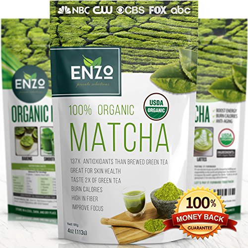 Unlike drinking brewed green tea, you drink the whole leaf plus the taste is twice as much as regular brewed green tea. With a tea spoon mixed in vanilla ice-cream you make your own Green Tea Ice-cream. Matcha is a GREAT afternoon drink to keep your stomach full helping you to stop cravings snack!