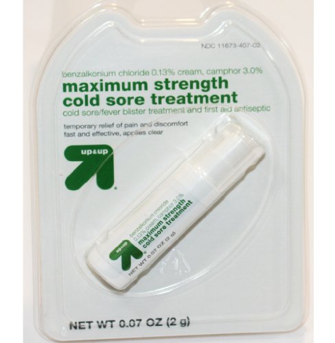 Maximum Strength Cold Sore Treatment. Temporary relief of pain and discomfort , fast and effective. Benzalkonium chloride 0.12%, cream camphor 3.0%. Applies clear.