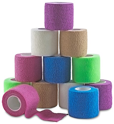 MEDca Self Adherent Cohesive Wrap Bandages 2 Inches X 5 Yards 12 Count with Strong Elastic and Colorful First Aid Tape for Sprain Swelling and Soreness on Wrist and Ankle (Rainbow Color)
