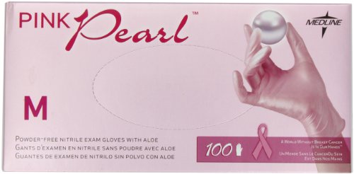Generation pink pearl gloves start with the extra protection of nitrile, adds the soothing comfort of an organic aloe lining, then gives the glove the glamorous sheen of your favorite string of pearls. Our pink nitrile gloves have superior chemical resistance and barrier protection. It's pink and from medline, so it's helping support the national breast cancer foundation. Latex free.