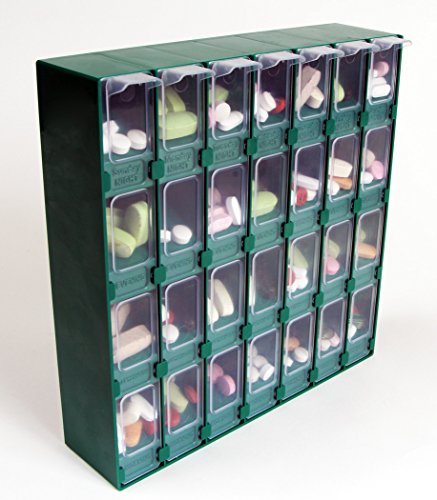 - Double the compartments: using a patented mirror-image design, the front and reverse of the pill organizer is IDENTICAL; 28 spacious compartments PER SIDE!