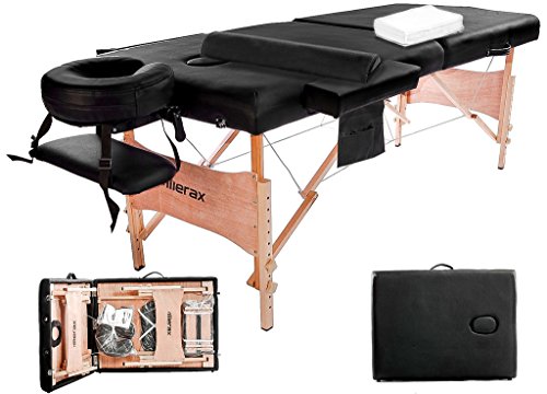 The Merax Deluxe Portable Massage Table has many great features: High quality, Light weight, Portable and Durable. This table is expertly crafted with a sturdy beech hardwood frame and features 4cm of high density foam for a comfortable massage experience.