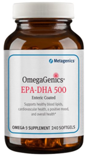 - OmegaGenics EPA-DHA 500 by Metagenics provides 500 mg of EPA and DHA in each enteric coated softgel.