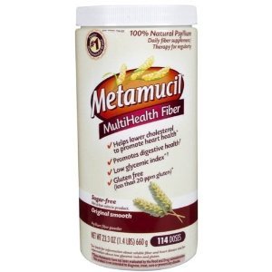 Daily fiber supplement. Each serving adds 3 grams of fiber to your diet. For lowering cholesterol to promote heart health. Diets low in saturated fat and cholesterol that include 7 grams of soluble fiber per day from psyllium husk, as in Metamucil, may reduce the risk of heart disease by lowering cholesterol. One adult dose of Metamucil has 2.4 grams of this soluble fiber. Consult a doctor if you are considering use of this product as part of a cholesterol-lowering program. Effective in treating occasional constipation and restoring regularity. The same great psyllium fiber that consumers have trusted for over 75 years! Helps lower cholesterol to promote heart health.* Promotes digestive health.** Low glycemic index.** Gluten free (less than 20 ppm gluten).* 100% natural psyllium. *See back for information about soluble fiber and heart disease and for information about low glycemic index and gluten. **These statements have not been evaluated by the Food and Drug Administration. This product is not intended to diagnose, treat, cure or prevent any disease.