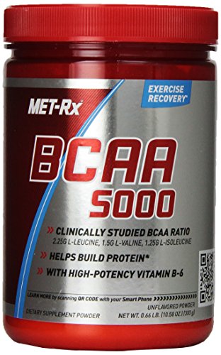 MET-Rx BCAA 5000 delivers a precise, clinically studied ratio of three essential Branched Chain Amino Acids-Leucine, Valine and Isoleucine (45/30/25). BCAAs are some of the most important aminos for exercise and recovery, since they work directly within muscle to regulate protein synthesis at the genetic level. BCAAs can also increase nitrogen retention and can be used as an energy source to fuel exercise. Taken before and after exercise or competition, MET-Rx BCAA 5000 will give you a jump-start on recovery, so you can unleash your genetic potential and come back better than ever.