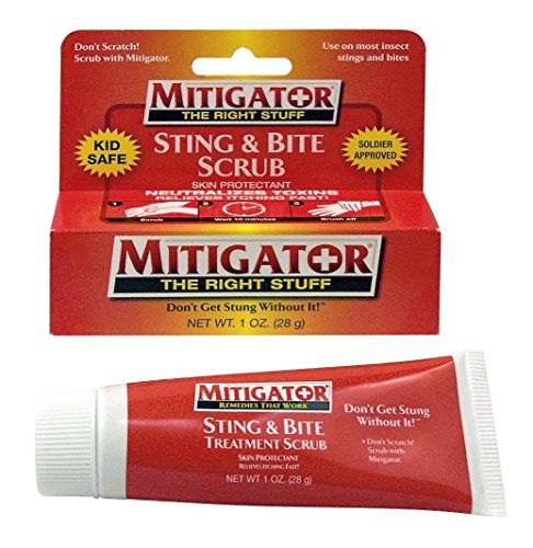 Scrubbing with Mitigator eliminates pain & itching fast, neutralizes toxins and can prevent blistering and scarring. Mitigator is effective on stings and bites from Fire Ants, Bees, Wasps, Jelly Fish, Mosquitoes, Spiders, Horse Flies, Yellow Flies and most other insects. Mitigator....Don't Get Stung Without It! Even scratching insect bites or stings can result in infection due to bacteria. Don't scratch! Scrub with Mitigator! Does Mitigator work for bee and wasp stings? Yes! Mitigator works great on most all insect stings and bites. For bee stings, be sure to remove the stinger first by brushing off with a credit card or firm piece of paper. Depending on your body's reaction to insect stings pain will be eliminated or significantly lessened. You may still experience some swelling and some continued trauma depending on how deeply the stinger penetrated and which species of bee or wasp attacked you. If you are prone to severe allergic reactions from any insect venom, you should ALWAYS seek medical aid or advice from a Physician. Can Mitigator Sting and Bite Scrub be used on spider bites? Yes, treat immediately with Mitigator as directed and then seek medical advice. Can Mitigator be used on my face? Yes, but do not use Mitigator on or near your eyes.