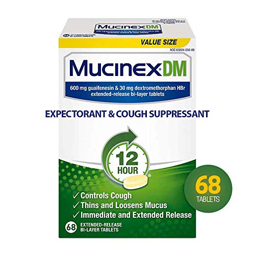 Mucinex DM 12-Hour Expectorant and Cough Suppressant Tablets are patented bi-layer tablets designed with two layers. The first layer is absorbed quickly by your body for immediate relief. The second layer dissolves slowly to continue relieving your cough for up to 12 hours. Mucinex DM contains 600mg of Guaifenesin to help thin and loosen mucus, & 30 mg of Dextromethorphan HBr to calm the cough control center and relieve coughing.