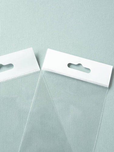 A hang tab on these cello bags allow you to hang the bags directly from pegs or merchandising displays. These are crystal clear, resealable cello bags for packaging. These have a self adhesive strip on the lip of the bag, located on the bottom of the bag. Peel off the strip, and fold it over to the body of the bag to seal the contents. Each bag measures 3x8 inches.