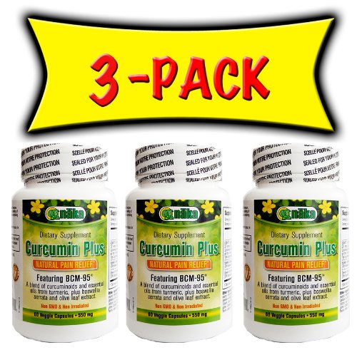 Naka Curcumin Plus, (Sold as Nutri-Cure in Canada) natural pain relief, featuring BCM-95. Curcumin Plus features a blend of curcuminoids and essential oils from turmeric, plus boswellia serrata and olive leaf extract. Curcuminoids from turmeric, bowellia and ALC have anti-imflammatory properties and help reduce joint and other pain. BCM-95 is a patented synergistic blend of curcuminoids and essential oils from turmeric with enhanced bioavailability.