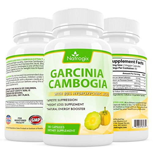 Natrogix 100% Pure Natural Garcinia Cambogia with 80% HCA (Hydroxycitric Acid) Complex All Natural Appetite Suppressant, Weight Loss Supplement Formula
