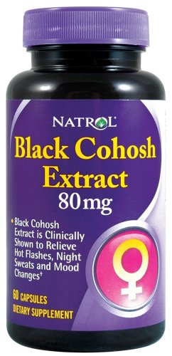 Black Cohosh 80mg by Natrol 60 Capsule Shown to Relieve Hot Flashes Night Sweats Menopause Relief Black Cohosh is one of the most thoroughly studied natural approaches to menopause. Black Cohosh has been shown to relieve hot flashes night sweats and mood changes. Size Form 60 Capsules Directions Take 2 capsules daily with a meal. Supplement Facts Serving Size 2 Capsules Servings Per Container 30 Ingredients Amt Per Serving Daily Value Black Cohosh Extract ( cimicfuga racemosa ) (root) 160mg Triterpene glycosides 4mg Daily Value not established. Other Ingredients Rice Powder Gelatin Silica Magnesium Stearate. NO Yeast Wheat Corn Milk Egg Soy Glutens Artificial Colors or Flavors Added Sugar Starch or Preservatives. Other Information STORE IN A COOL DRY PLACE. KEEP OUT OF REACH OF CHILDREN.