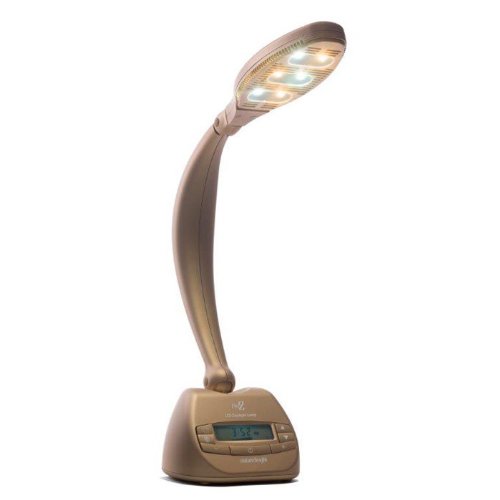 Nature Bright Per2 smart lamp. The Per2 LED daylight lamp goes beyond the average desk lamp as it simulates a naturalistic environment through its careful calibration and changing color temperatures. Its capabilities include enhancing alertness, concentration and energy to keep your body at a natural rhythm. Dynamic, color temperature changing LED reading lamp with auto-shifting color temperature option helps to recalibrate your circadian rhythm by simulating the constantly changing color temperature of morning to day to evening light. Features: Dawn dusk simulation, Integrated alarm clock, Fully adjustable, 300 degrees head rotation, 90 forward and rear tilt, 180 degrees side to side rotation. It is a perfect LED daylight lamp which produces light output up to 1000 lumen and extreme clarity with power consumption of only 6 watts. Great desk lamp for kids and seniors. Dimensions: 20" long x 5" wide x 7" high, weight: 5 pounds.