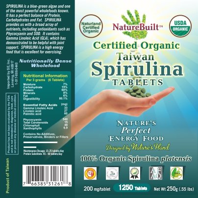 - 1 x 250 gram PACKET USDA Certified Organic Taiwan Spirulina (200 mg/tablet, 1250 tablets)