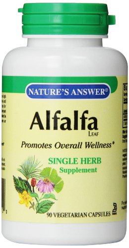 Alfalfa leaf (Medicago sativa) contains high levels of chlorophyll, proteins, vitamins and minerals, making it an ideal natural tonic for overall wellness. Nature's Answer capsules feature the highest quality of organic, responsibly wildcrafted or cultivated herbs, which maintain the naturally-occurring constituents found in the plant. They are carefully selected and finely milled (micronized), allowing faster absorption by the body; Manufactured to cGMP (current Good Manufacturing Practices) standards; Free of synthetic ingredients.