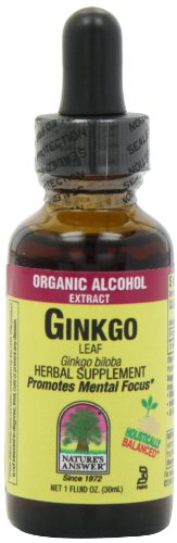 Ginkgo leaf, ginkgo biloba, herbal supplement, promotes mental focus. Organic Alcohol extract. Nature's Answer organic alcohol extracts are produced using alcohol, water and coconut glycerin utilizing our cold Bio-Chelated proprietary extraction process, yielding a Holistically Balanced standardized extract. Liquid extracts are absorbed faster than tablets or capsules, and are more potent than tinctures. Holistically Balanced guarantees that the constituents of the extract are in the same synergistic ratios as in the plant.