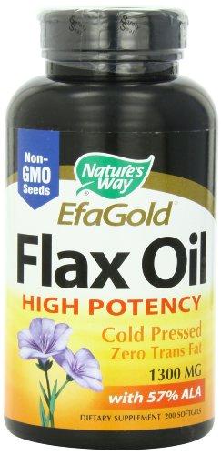 Flax Oil 1300 mg 200 Softgels by Nature's Way 200 Softgel Nature's Way EFAGold is the highest quality Flax seed oil - guaranteed to contain 57 alpha-linolenic acid (ALA) from non-GMO seeds. ALA is an important Omega-3 essential fatty acid which must be obtained in your everyday diet. Organic cold pressed unrefined hexane free and zero trans fat. Quality control from soil to oil Our involvement begins in the fields with the growers and continues through harvesting seed selection oil pressing and purity testing. Dosage Take 2 softgels 2 to 3 times daily. Dosage Form Does Not Contain Chemical solvents sugars starch artificial colors flavors or preservatives.