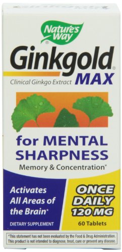 Ginkgold MAX 120mg by Nature's Way 60 Tablet For years it has been a best selling natural health care product in Europe and the United States. And it's the only ginkgo extract used and recommended by doctors and other healthcare professionals in over 70 countries outselling all other ginkgo products combined worldwide. For mental sharpness memory concentration Ginkgold improves mental sharpness concentration memory and cognitive activity. It also supports healthy circulation to the brain as well as the extremities. And it maintains healthy blood vessel tone and reduces blood viscosity.