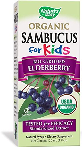 • Nature's Way Organic Sambucus for Kids syrup contains a unique, full-spectrum, standardized black elderberry extract