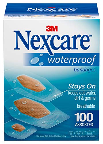 Designed to stay on in wet conditions and keep the water out, Nexcare Waterproof Bandages protect minor wounds like scrapes, cuts and blisters during cooking, cleaning, exercising, gardening, swimming, fishing and other outdoor activities. Ultra-thin, breathable construction with a 360-degree seal that protects against water, dirt and germs to help prevent infection. Made with a clear flexible backing and non-stick pad, these bandages easily adhere and conform to fingers, elbows, knees and other hard-to-cover parts. Nexcare Waterproof Bandages deserve a spot in every first-aid kit, offering reliable-wound care that keeps you moving at your everyday pace.