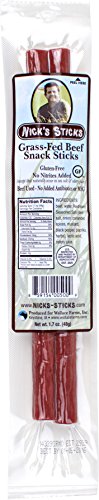 All of the Goodness, None of the Garbage..." Nick's sticks are produced by Wenzel's Farm from 100% Grass-fed and finished Cows never given antibiotics or hormones. These delicious snack sticks are seasoned with Redmond Organic Seasoned Salt and are free of Nitrates, Nitrites, Gluten, and MSG. 6 packages each containing 2 sticks.