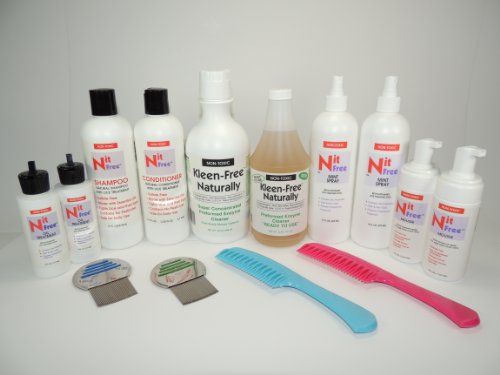 This is a complete do it your self kit for removing head lice. This kit includes everything needed to treat and prevent head lice. Included: (2) Nit Free Terminator comb, (2) 4oz Nit Free enzyme treatment mousse, (2) 4oz Nit Free Oil Treatment, (1) 16oz Nit Free Shampoo, (1) 16oz Nit Free Conditioner, (2) 16oz Nit Free Mint repellent spray, (2) detangling combs, (1) Kleen Free 32oz concentrate, (1) 24oz kleen free ready to use spray, and complete instructions. We guarantee our product to be effective, and we ship them to you fast.