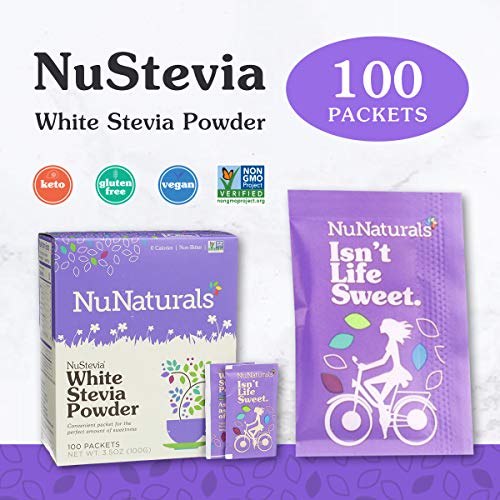 NuNaturals NuStevia White Stevia Powder is the perfect all-purpose sweetener to use on the go. Our stevia packets provide the ultimate convenience, and make it easy to take your stevia powder with you to work, restaurants, or even on vacation - wherever you might want to use stevia! Our pre-measured packets take the guesswork out of figuring out how much to use, making it a simple, healthy, and economical option - just one can be used to replace two teaspoons of sugar. Maltodextrin and Stevia Extract: Our stevia powder contains maltodextrin, a tasteless food-grade carbohydrate derived from non-GMO corn. The use of maltodextrin makes stevia powder easier to measure as it helps the Stevia flow smoothly out of the packet.