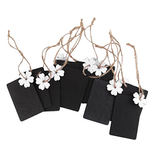 - Product: Mini Rectangular Hanging Chalkboard Sign Message Boards Wooden Blackboard with White Flower, Wood Gift Tags Price Tags. Color: Black, white. Material: Wood. Size: Approx. 7 * 4.5cm.