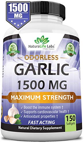 Odorless Pure Garlic 1,500 mg per Soft Gel Maximum Strength 150 Soft gels Promotes Healthy Cholesterol Levels Immune System Support