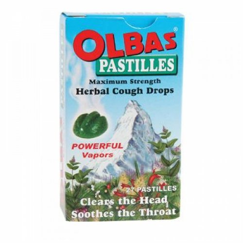 Powerful Vapors Clears the Head Soothes the Throat Provides instant, cool soothing relief for sore throat and fights coughs. Powerful, cooling vapors help your nasal passages feel clearer, too! An effective formula made from soothing herbs and chlorophyll, which gives Olbas Pastilles their luscious green color - and helps freshens your breath too! Uses: Temporarily relieves Cough due to minor throat and bronchial irritation occurring with the common cold or inhaled irritants occasional minor irritations or sore throat.