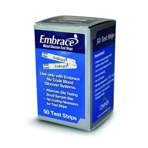Embrace Blood Glucose Test Strips, 50 Test Strips in box, Use only with Embrace No Code Blood Glucose Systems.