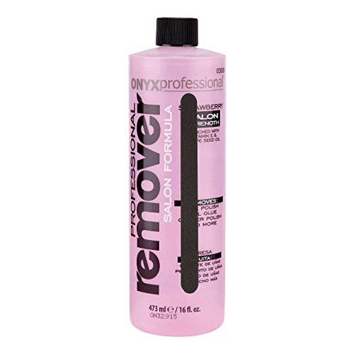 Onyx strawberry scented salon formula works great on removing nail polish, nail glue, glitter polish and more. Its unique salon strength formula is enriched with vitamin E and grape seed oil to condition nails. 16oz bottle comes with nail file.