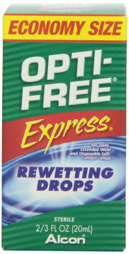 Sterile. For daily, extended wear and disposable soft contact lenses. Opti-Free Express Rewetting Drops moistens your lenses and helps to remove particulate material that may cause irritation and/or discomfort. Opti-Free Express Rewetting Drops, an effective thimerosal-free formula, is especially formulated for use while wearing daily, extended wear and disposable soft (hydrophilic) contact lenses.